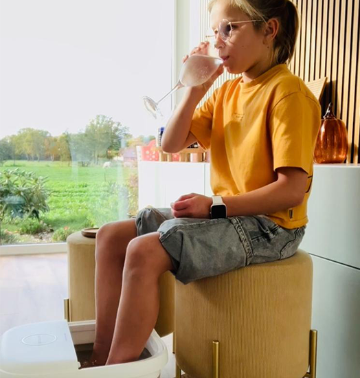 We starten met een warm en ontspannend voetenbadje. Terwijl de voetjes heerlijk ontspannen kan het kindje genieten van een drankje en een hapje.